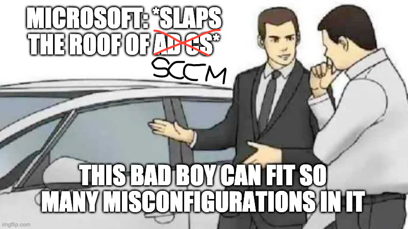 System Center Configuration Manager (SCCM), also known as the Misconfiguration Manager (pun intended), provides administrators with a way to manage software and updates on devices. It is essentially the predecessor of Microsoft Intune, or the on-premises equivalent of Intune. To manage devices using SCCM, the client software needs to be installed on each device. A mechanism called SCCM Client Push Installation is commonly used to install this software automatically.